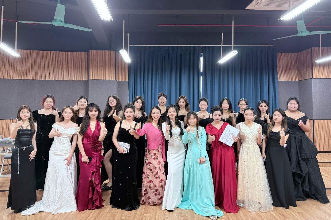 近日,广州应用科技学院2025年春季学期期末考试全面开考。音乐学院2024级音乐学专业学生迎来了一场别开生面的大一期末考——名师教授作考官,考场变舞台,盛装迎考,以演出形式检验学习成果。广应科音乐学院对标正式演出标准,从考场布置到流程设计均模拟舞台场景,全方位检验教学成果与学生专业能力。在期末考试现场,学生们身着礼服或演出服走进考场,在声乐、钢琴、合唱、器乐、形体和舞蹈考核环节中全情投入,用专业表现为大一学年的学习交出阶段性答卷。在今年的毕业典礼上,正值期末周的音乐学院师生,也为典礼开唱了“暖场音乐会”,一首首熟悉的歌曲成为毕业季最动人的青春回忆。