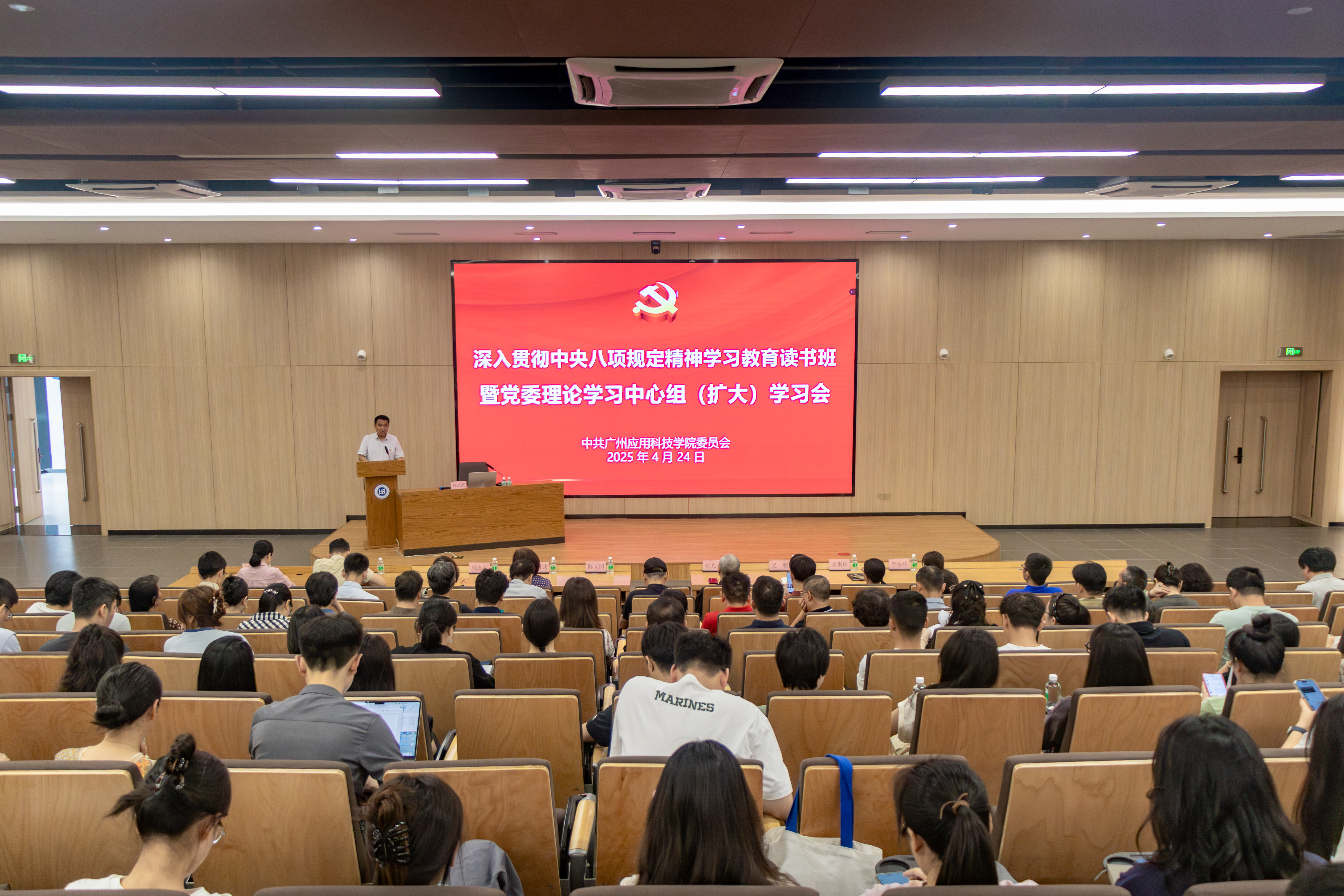 4月24日,我校召开深入贯彻中央八项规定精神学习教育读书班暨党委理论学习中心组(扩大)学习会。全体校领导、全体中层干部、科级干部、党支部书记出席会议,党委书记陈光团主持会议并作总结讲话。