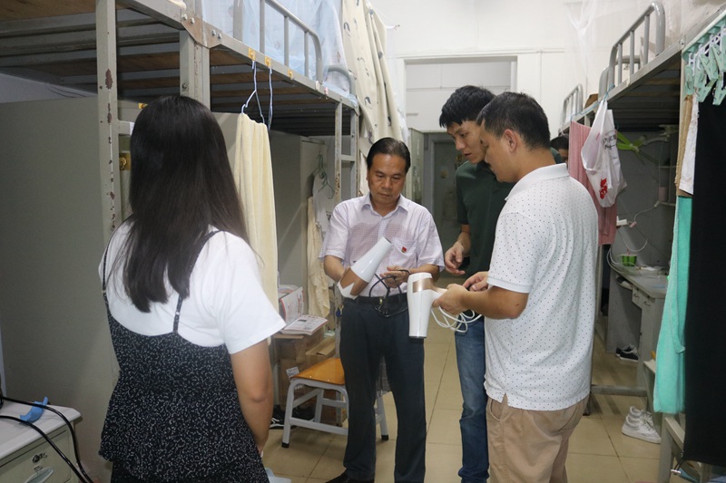 在本次检查中,发现大部分的宿舍都能够遵守学校规定,保持干净整洁,个人物品摆放整齐。针对个别宿舍卫生情况较差的情况,检查工作人员现场提出了整改要求。党委副书记、副校长李金飞在检查过程中,向宿舍的学生耐心讲解用电安全知识,关心同学们生活、学习情况,特别关注宿舍维修问题,对存在需要维修的宿舍,现场与同行负责维修的负责人沟通,尽快解决学生宿舍存在的维修问题。