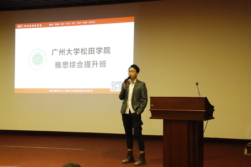 松田网讯(记者:黄佩珊 学生记者:朱浩文 黄潇澜)10月23日晚,学校职业教育办公室在行政楼三楼多功能厅召开雅思英语宣讲会。招生办主任欧仕身,曼哈顿国际英语机构讲师,以及我校师生代表参加宣讲会。