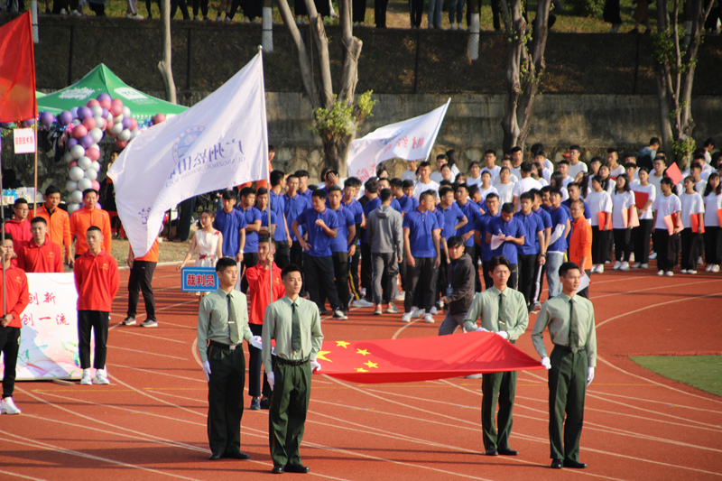 伴随着激昂的运动员进行曲,国旗队、校旗队、主题牌队、红旗队、裁判员代表队、各院系运动员代表队依次朝主席台走来,随后是各院系整齐有序的方队表演以及艺术表演。随后,各类比赛纷纷开展,持续两天的校运会火热进行中……