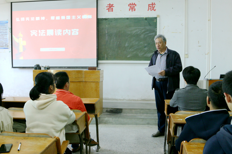 松田网讯(记者:李帆)12月4日是我国第6个“国家宪法日”。今年国家宪法日的主题是:弘扬宪法精神,厚植爱国主义情怀。12月4日上午,教育部在北京主会场举行了教育系统国家宪法日“宪法晨读”活动,在我校分会场,师生代表通过网络直播参加了大会,校领导、党委各职能部门负责人、各院系分管学生工作负责人以及辅导员分赴各班级,领读宪法部分章节。