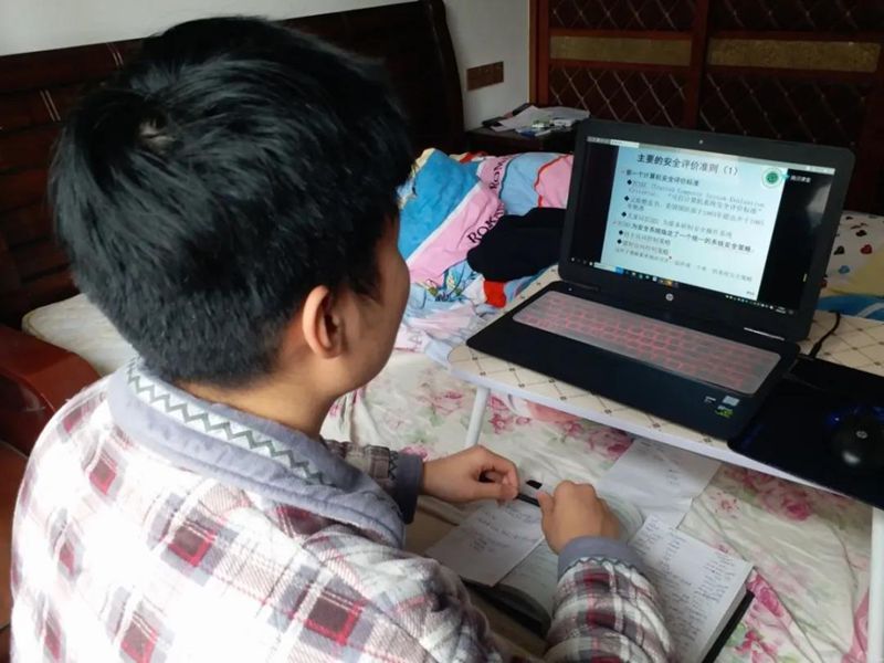 在湖北恩施老家,来自外语系的覃文秀老师准时上线,开始了开学第一天的授课。她表示,3月9日采用学习通自主学习、签到、发布通知、布置作业,采用企业微信直播上课的形式给19级商务英语2班的同学们上了《基础听力2》,除了网络原因导致连麦个别同学出现延迟,其它和课堂上课差别不大,同学们反应也比较积极,同学们对线上直播课程也很理解支持,课堂表现令人较满意。