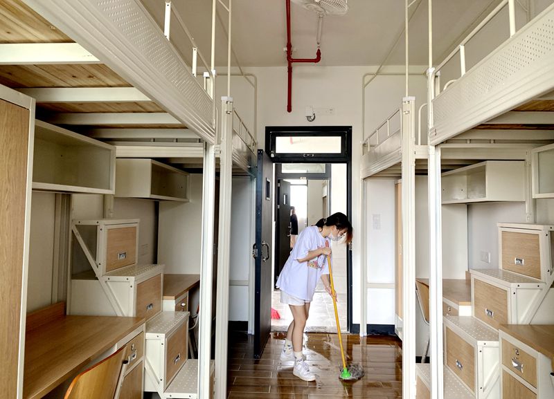 上午一大早,党委副书记裴九雄带领学生处和各院系的老师、学生干部首先来到C16、C17、C18新生公寓,开展新生宿舍打扫工作,提前为2020级新同学营造一个整洁文明、温馨和谐的宿舍环境。