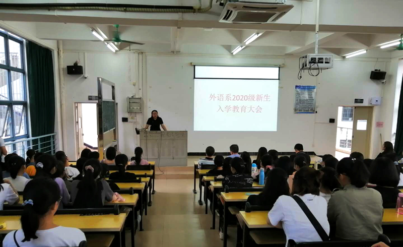 9月16日,为帮助新生掀开生活新篇章、开启人生新旅途,我校外语系在九栋阶梯2教室召开了外语系2020级新生入学教育大会。本次会议由新生班辅导员郑玲芳主持,外语系系主任单新荣,外语系党总支部书记谷跃兵,英语教研室主任赖建青,大学英语第二教研室主任贾少溥等教师代表以及各级辅导员出席。