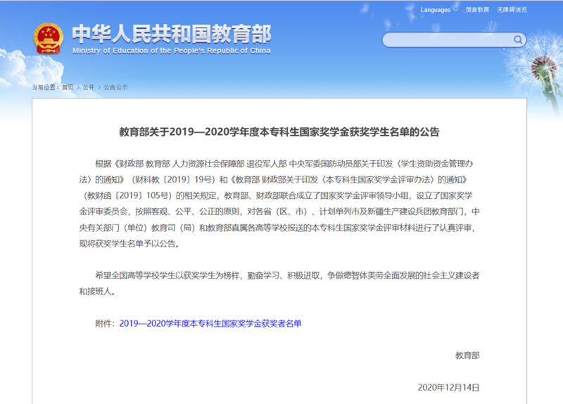12月17日,教育部门户网站发布