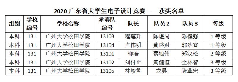 我校5支队伍参加2020广东省大学生电子设计竞赛获奖