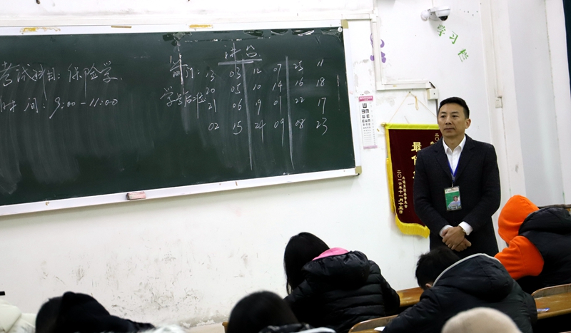 1月11日上午,党委书记王永云、副校长李江凌、党委副书记裴九雄分别到各个考场检查指导期末考试工作,并通过全校视频监控平台进行在线巡考。学校领导对当日相关场次各考场进行了逐一巡视,详细询问了有关工作安排和落实情况,进一步明确考试工作职责,细化工作分工、流程和相关工作的领导责任和工作责任。