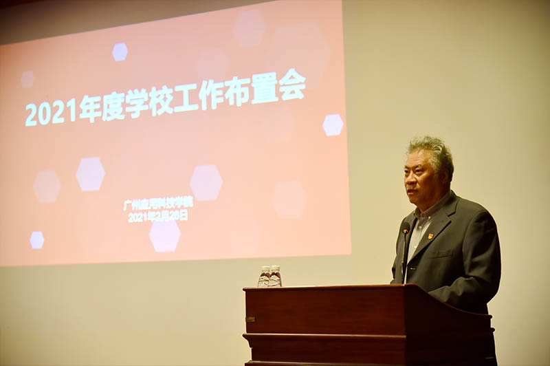 会上,学校董事长刘剑锋作“认清发展阶段新形势,谋划学校发展新蓝图”的专题讲话。刘剑锋董事长对过去一年学校在成功转设更名、党建工作、人才培养、学科专业建设等方面取得的成绩表示肯定。他指出,2021年是中国共产党成立100周年,是“十四五”规划开局之年,是全面建成小康社会、开启全面建设社会主义现代化国家新征程的元年,同时,也是我校成功转设更名为广州应用科技学院后的开局起步之年,做好今年的各项工作责任重大、意义重大。刘剑锋董事长表示,以对历史、对现在、对未来负责的态度,在发展新阶段,学校要以“立足大湾区,培养高素质技术技能型人才;站在新起点,建设高水平一流应用型大学”为总体办学方向,谋划发展新蓝图,努力为党育时代新人、为国育栋梁之才。