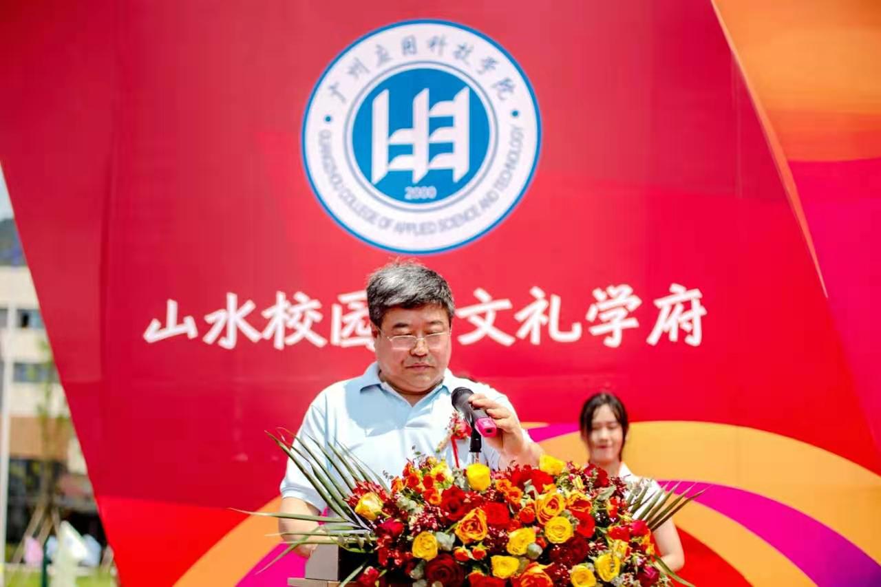 伴随着领导嘉宾启动按钮,两架科技感十足的无人机腾空跃起,高高擎起红色幕布,为广州应用科技学院肇庆校区大门正式揭牌。自此,一座崭新的“山水校园、文礼学府”校园拔地而起,面向全国正式招生。