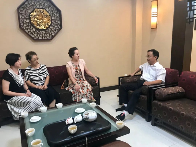 ▲潮安区委书记庄朝惠(右二)接见我校一行