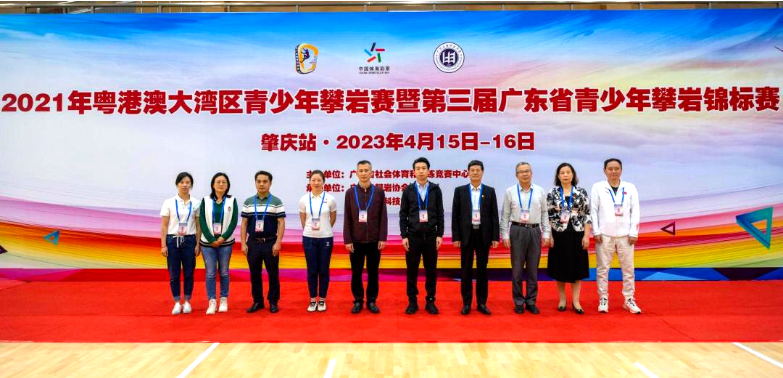 延迟两年的粤港澳大湾区青少年攀岩赛和第三届广东省青少年攀岩锦标赛合并举行,对于众多青少年运动员和家长来说,备受期待。广东省社会体育和训练竞赛中心部长钱建国,广东省攀岩协会副秘书长白玲,肇庆市文化广电旅游体育局群众体育科科长高双成,广州应用科技学院董事长王睿、校长刘剑锋、党委书记王永云、常务副校长吴舸、副校长刘志新、副校长李荆松、体育科技学院院长张军,本次比赛裁判长郭君等领导出席2021年粤港澳大湾区青少年攀岩赛(肇庆站)暨第三届广东省青少年攀岩锦标赛开幕式。