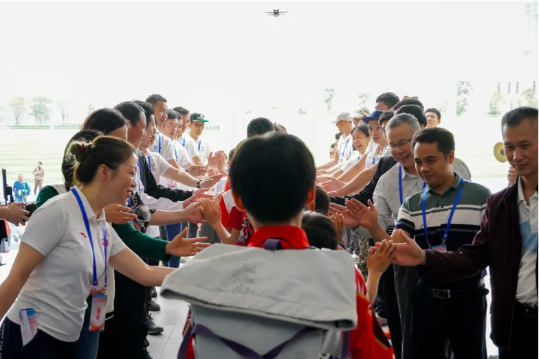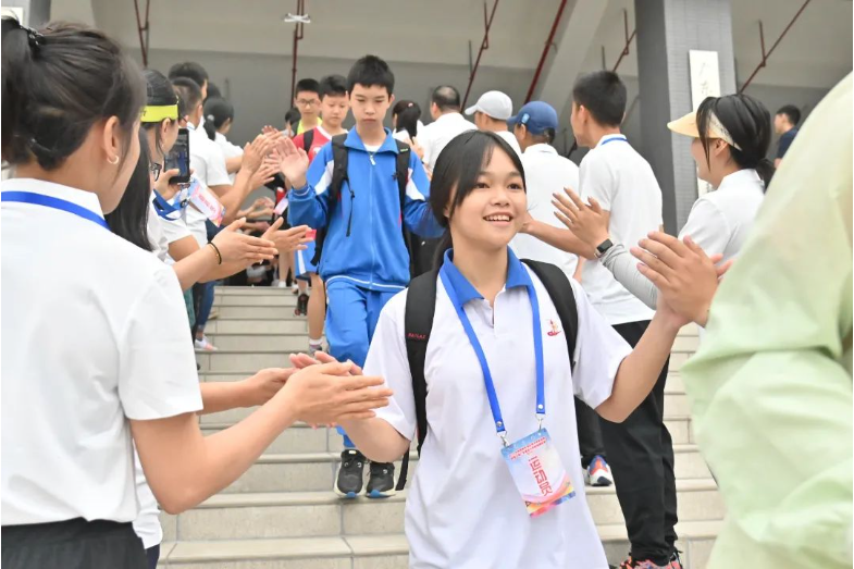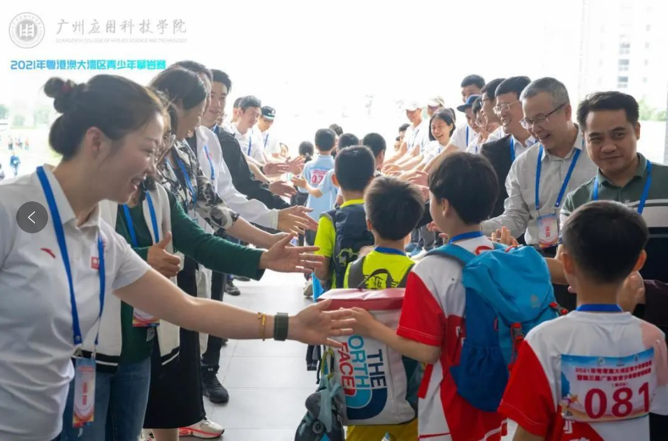体育连接心灵,山水校园,文礼学府,以情相系,青少年的健康成长需要鼓励。广州应用科技学院高度重视承办此次攀岩赛,值得一提的是,在开幕式中的运动员出场,也独具策划、独具仪式感。出席开幕式的所有领导嘉宾、全体裁判员移步篮球馆外大门,分列两排,夹道欢迎183名青少年运动员一一步出会场前往赛场,并和所有运动员一一击掌加油,场面热情而激励