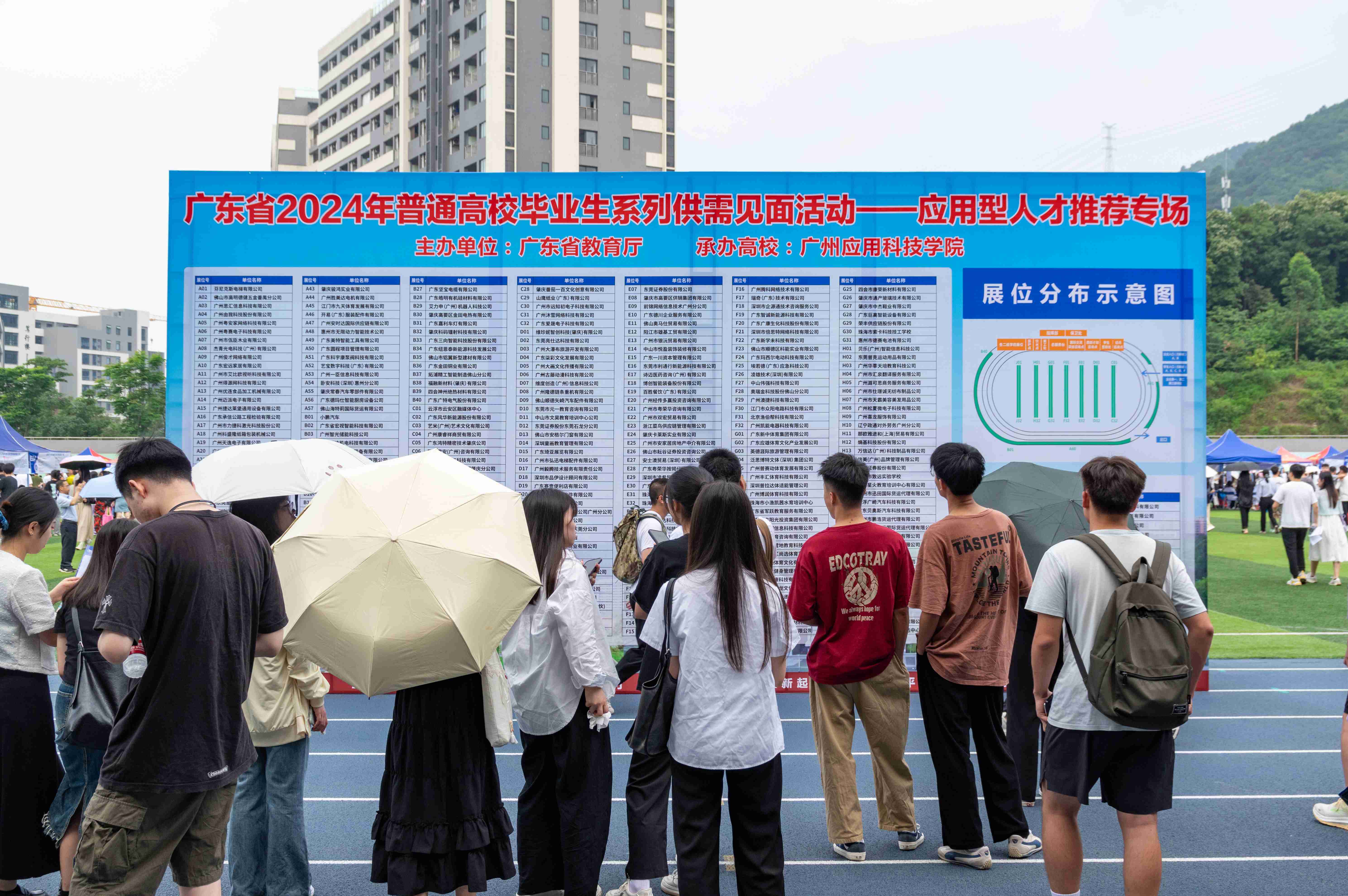 2024届毕业生即将告别学校,迈向新的人生阶段。为深入贯彻学习党的二十大精神,全面落实党中央、国务院“稳就业保就业”的决策部署,满足用人单位招才引智需求,拓宽毕业生职业选择视野,积极搭建“纳才”与“求职”双向选择的良好平台,全力促进2024届毕业生高质量充分就业,5月17日,由广东省教育厅主办、广州应用科技学院承办的广东省2024届普通高校毕业生系列供需见面活动——应用型人才推荐专场招聘会在广州应用科技学院肇庆校区举行。这也是广应科首次在肇庆校区承办省级高校毕业生招聘会。