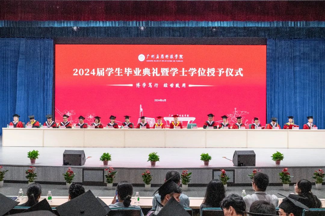6月26日上午,我校(肇庆校区)2024届学生毕业典礼暨学士学位授予仪式在肇庆校区图书馆小礼堂举行。这是我校转设更名之后,以广州应用科技学院之名招收的第二届普通专升本学生,也是肇庆校区的第二届学生正式毕业。广州应用科技学院校长刘剑锋,执行校长张光宇,党委书记王永云,副校长刘志新、李荆松,校长助理吴明生、李根珍,学校财务总监姚满金出席毕业典礼,学位评定委员会委员,各二级学院院长、党委书记(副书记)、相关职能部门负责人、教师代表、家长代表、肇庆毕业生代表以及2020级毕业班辅导员参加肇庆校区毕业典礼。本次毕业典礼由副校长刘志新主持。