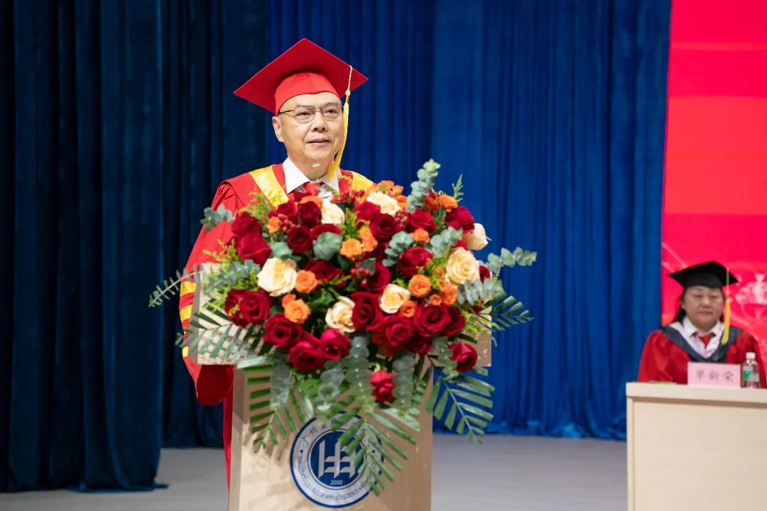 张光宇执行校长在毕业典礼上讲话,他首先代表全校师生员工,向肇庆校区2561名2024届毕业生表示热烈的祝贺!向默默耕耘在教育第一线、辛勤付出的老师们致以最崇高的敬意!向一如既往地支持学校教育工作的家长们表达最诚挚的感谢!张光宇执行校长表示,回顾过往,时光荏苒,岁月如歌。肇庆校区2024届毕业生来自于2022年入学的专升本学生, 在过去的2年里,结识了来自五湖四海、志同道合的朋友;用勤奋和智慧探寻着世界的奥秘,参与了专业学习实训和项目竞赛等实践活动;将理论知识与实际操作相结合,在专业实践的舞台上历练,校园的每一寸土地,都承载着同学们的汗水与欢笑,见证着的成长与蜕变,参与了学校的高质量发展。