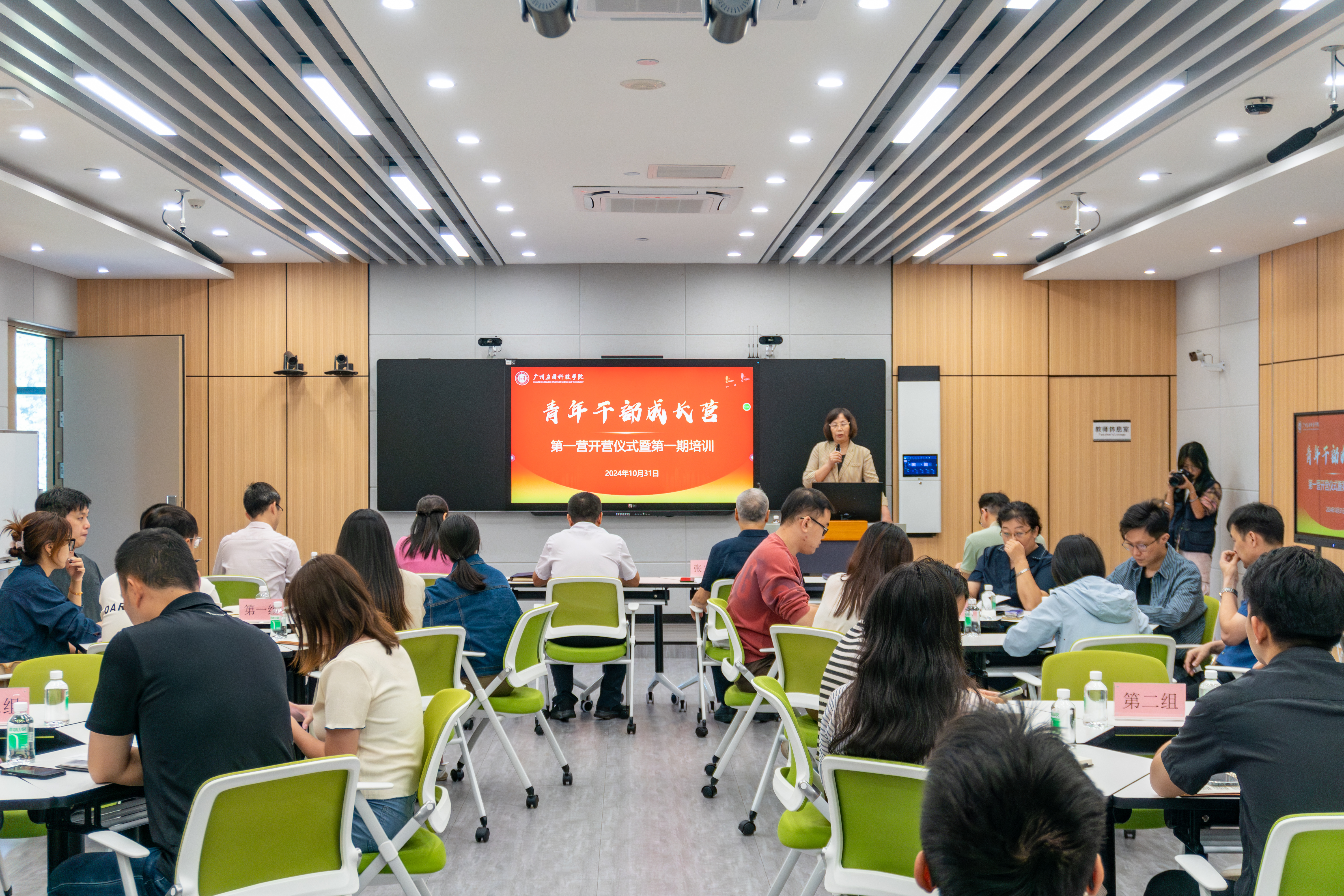 在全党全国上下深入学习贯彻党的二十届三中全会精神,我校深入实施“三步走”战略,全力迎接教育教学合格评估,努力建设高水平应用型大学之际,10月31日上午,广州应用技术学院青年干部成长第一营开营仪式在图书馆905智慧教室举行。执行校长张光宇、党委书记陈光团、党委副书记刘志新、校长助理李根珍等党政校领导出席开营仪式,综合办公室、党委组织部负责人,全校正、副科级干部参加开营仪式。刘志新副书记主持开营仪式。