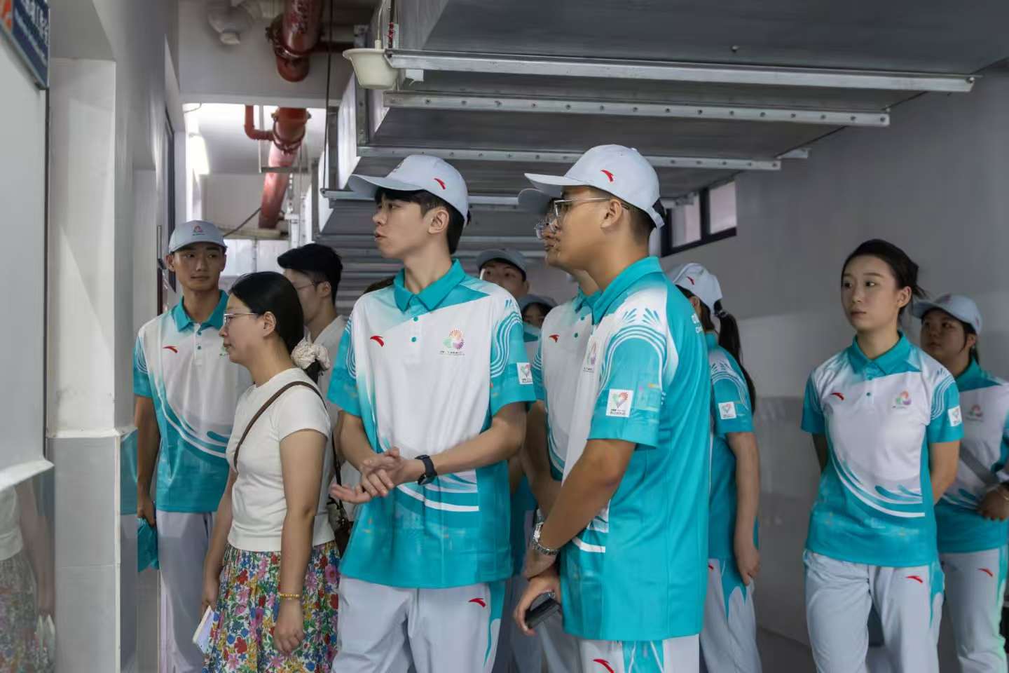 赛事志愿者们刚踏入校园,便迎来了专属的“返校仪式”——在相关人员的引导下,大家有序排队领取赛事物资:印有全运会标识的志愿者服装、各宿舍的钥匙、免费水卡等物品。随后,志愿者们前往集中住宿点安顿,统一的住宿安排不仅便于团队管理与紧急集合,更让大家在赛前形成团结的浓厚氛围。