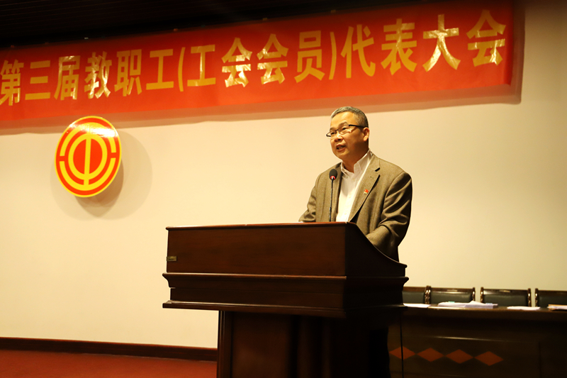 他代表学院党委对新一届工会委员会提出三点希望:一、要坚持以职工为中心,服务教职工稳定发展;二、要发挥桥梁纽带作用,服务学校建设发展;三、要主动作为担使命,真抓实干再创新佳绩。