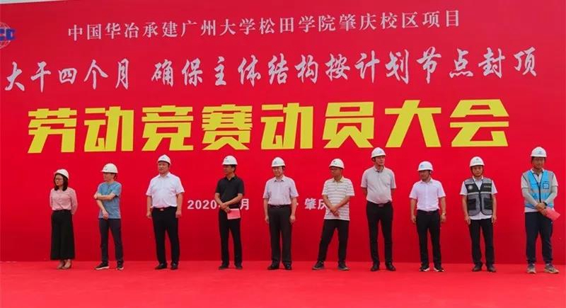 中国华冶集团项目部负责人在动员大会上表态,全体干部职工要团结一致,提振士气,鼓足干劲,以破釜沉舟的胆略、背水一战的决心、攻坚克难的勇气,认真准备、精心组织、细化管理、保证安全质量,注重文明施工,抓好疫情防控,履行社会责任,奉献央企力量,将以本次劳动竞赛活动为契机,进一步激发昂扬斗志,展示坚定信心,营造出“咬定工期不放松,施工大干争先锋”的竞赛氛围,以锲而不舍的毅力,以不达目标不罢休的干劲,保安全、保质量,确保按期完成关键节点目标任务,把广州大学松田学院肇庆校区建设项目打造成为标杆项目、示范项目。