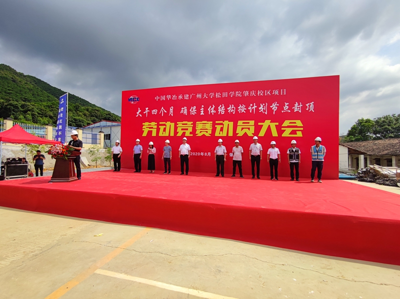 据了解,我校肇庆校区承建方中国华冶集团,为确保本次劳动竞赛顺利开展,在建设动员大会上提出了三点要求:一要统一思想、凝聚共识、明确方向。要以本次劳动竞赛活动为契机,开启“加速度”、按下“快进键”、吹响“冲锋号”,带动和激发出全体参战人员的工作主动性、积极性,以时不我待的精神状态,奋力推进施工作业高效有序进行,亮出华冶人的“钢筋铁骨”,当好主人翁,建功新时代。二要精心组织、科学安排、形成合力。当前正值施工生产的黄金季节,希望广大参赛人员克服雨季、高温、夜间施工、各专业交叉作业影响,严格按照进度计划,科学组织、精心谋划,合理调配资源,充分挖掘内部潜力,形成项目合力,对标先进,优化工序,确保施工节点按期完成。三要严格考核,加强督导,确保施工安全和工程质量。安全质量工作是实现劳动竞赛目标的前提,项目管理团队要严格管控,周密安排,严格落实安全质量管理制度和规范要求,做到安全、质量、工期、文明施工协调推进,在确保安全生产的同时,顺利完成劳动竞赛目标。