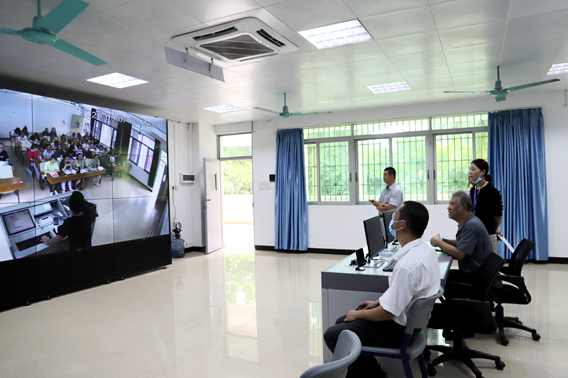我校校长庞永师教授带领有关领导和相关部门负责人,检查学校疫情防控保障,巡查新学期第一天的教学情况。同时,校领导还来到教学监控室,在大屏幕前,对全校各个教室进行全面浏览,对教学动态进行全面了解。